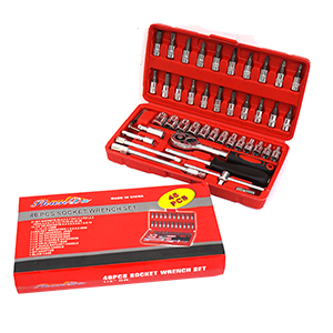سایر توضیحات : سری آلن , چهار سو , چهار سوی خاردار , دو سو , بکس , ستاره‌ای تعداد ست ۴۶ عددی کاور دارد جنس کاور پلاستیکی با ابعاد ۲۴ × ۱۳ × ۵ سانتی‌متر سایر توضیحات شامل:, - ۱ عدد آچار جغجغه‌ای به طول ۱۵سانتی‌‎متر با درایو ۱/۴ اینچ, - ۱ عدد دسته‌ی پیچ‌گوشتی به طول ۱۵ سانتی‌متر با درایو ۱/۴ اینچ, - ۲ عدد افزاینده‌ی طول در سایزهای ۱۰ و ۵ سانتی‌متر, - ۱ عدد افزاینده‌ی طول فنری ۱۴سانتی‌متری, - ۱ عدد آچار T به طول ۱۱.۵ سانتی‌متر, - ۱ عدد سری آلن, - ۳ عدد آچار آلن با طول ۴.۵ سانتی‌متر, - ۲۱ عدد سری پیچ‌گوشتی شامل: ۳ عدد سری پیچ‌گوشتی چهارسو خاردار در سایزهای PZ۱ ،PZ۲ و PZ۳ و ۳ عدد سری دوسو در سایزهای SL۴ ،SL۵.۵ و SL۷ و ۳ عدد سری چهارسو در سایزهای PH۱ ،PH۲ و PH۳ و ۶ عدد سری آلن ستاره‌ای در سایزهای T۱۰ ،T۱۵ ،T۲۰ ،T۲۵ ،T۳۰ ،T۴۰ و ۶ عدد سری آلن در سایزهای HEX۷ ،HEX۶ ،HEX۵ ،HEX۴ ،HEX۳ ،HEX۸, - ۱۳ عدد سری بکس در سایزهای ۴، ۴.۵، ۵، ۵.۵، ۶، ۷، ۸، ۹، ۱۰، ۱۱، ۱۲، ۱۳ و ۱۴ میلی‌متر, - ۱ عدد لقلقه به طول ۴ سانتی‌متر, - وزن کل: ۱۲۲۰ گرم