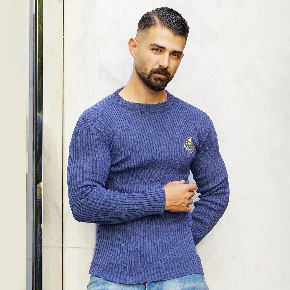 بافت یقه گرد کشبافت کبریتی آبی مدل Rama