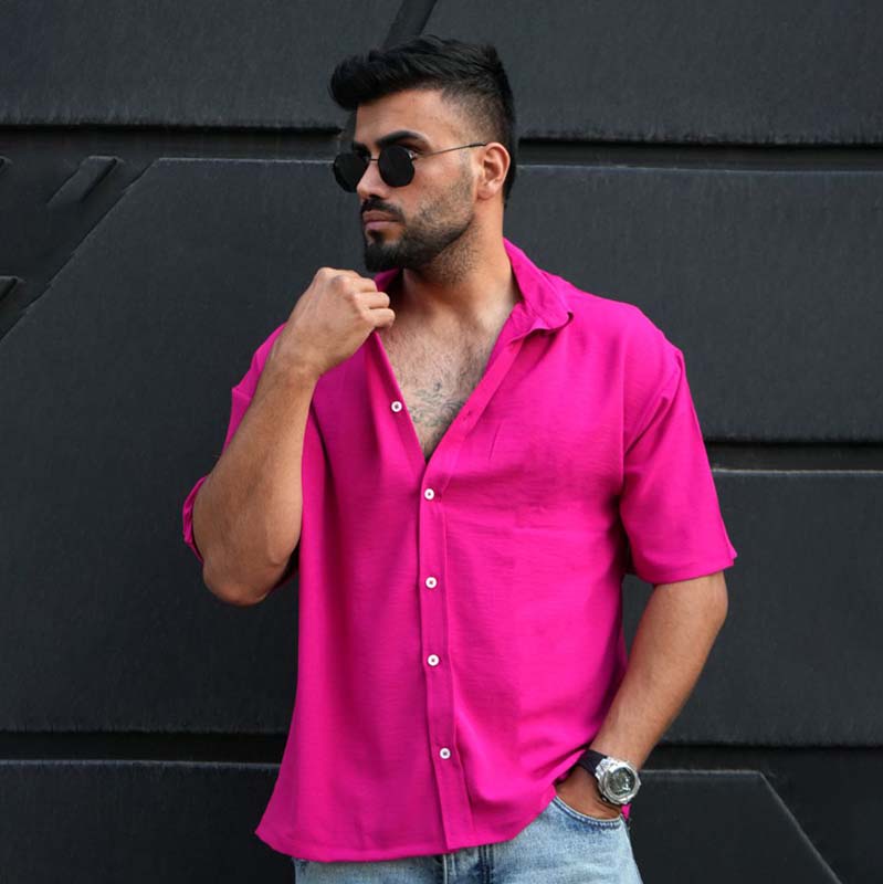 پیراهن آستین کوتاه صورتی مردانه مدل باکسی