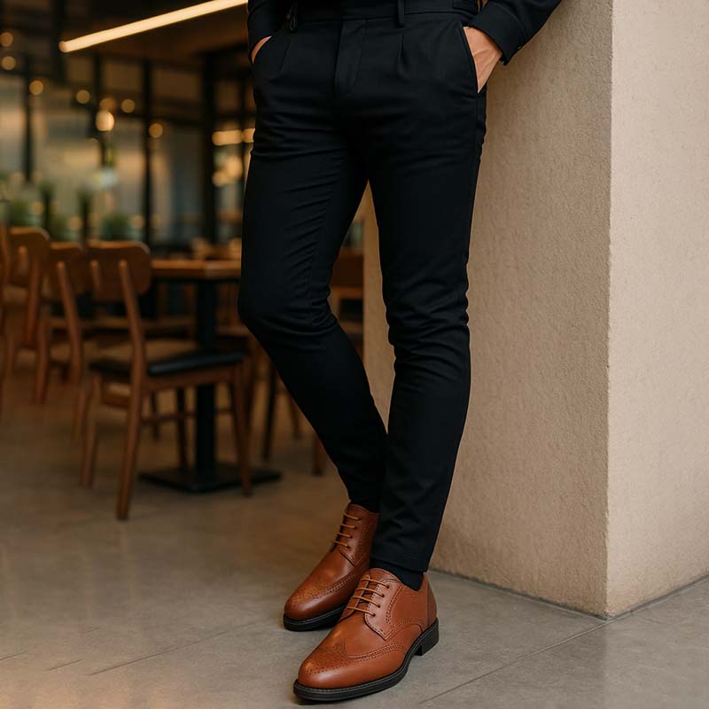 پکیج شلوار مشکی Migelکفش رسمی عسلی مدل Edvin